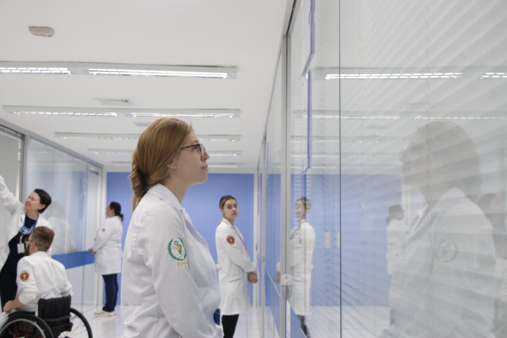 Outra vantagem do OSCE é que o estudante consegue vivenciar situações da profissão em um ambiente protegido. “Ele aprende com manequins de alta fidelidade, com pacientes simulados, com cenários de alta complexidade. Então quando ele se depara com algo parecido na vida real, ele já vai saber o que fazer”, afirma Karyna.